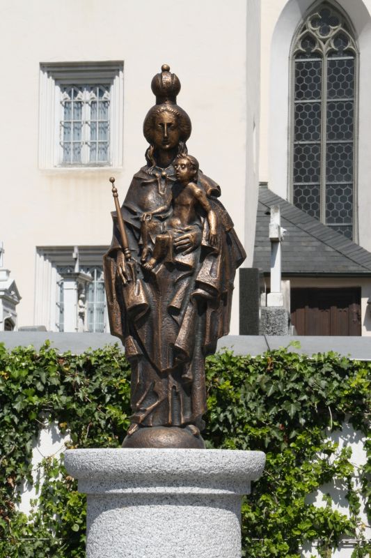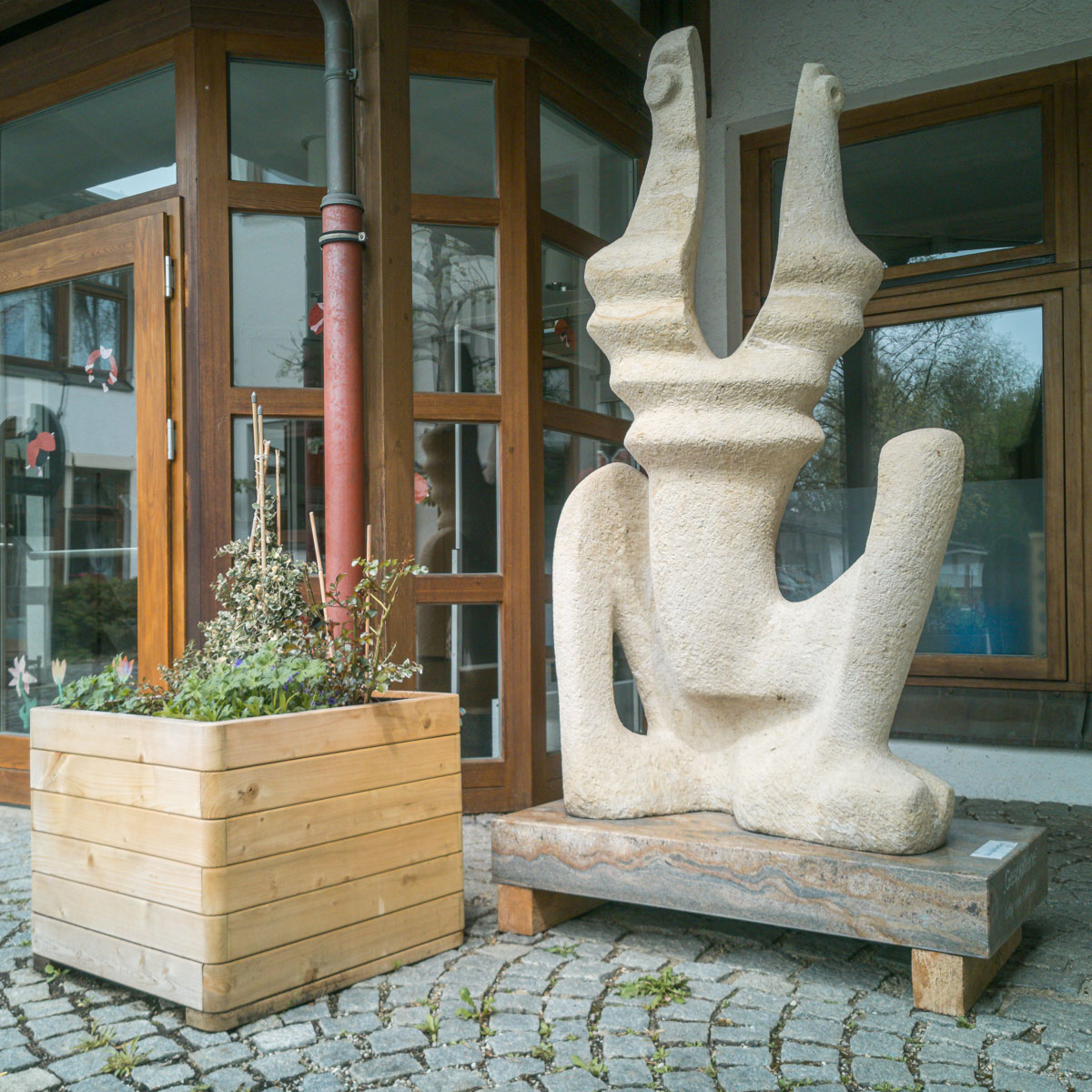 Die Bronzeskulptur Johannes der Täufer vor der Grundschule in Griesstätt, auch aus der Hand Huschka's, zeigt das Alte und das Neue Testament, dazwischen Johannes der Täufer als Mittler.